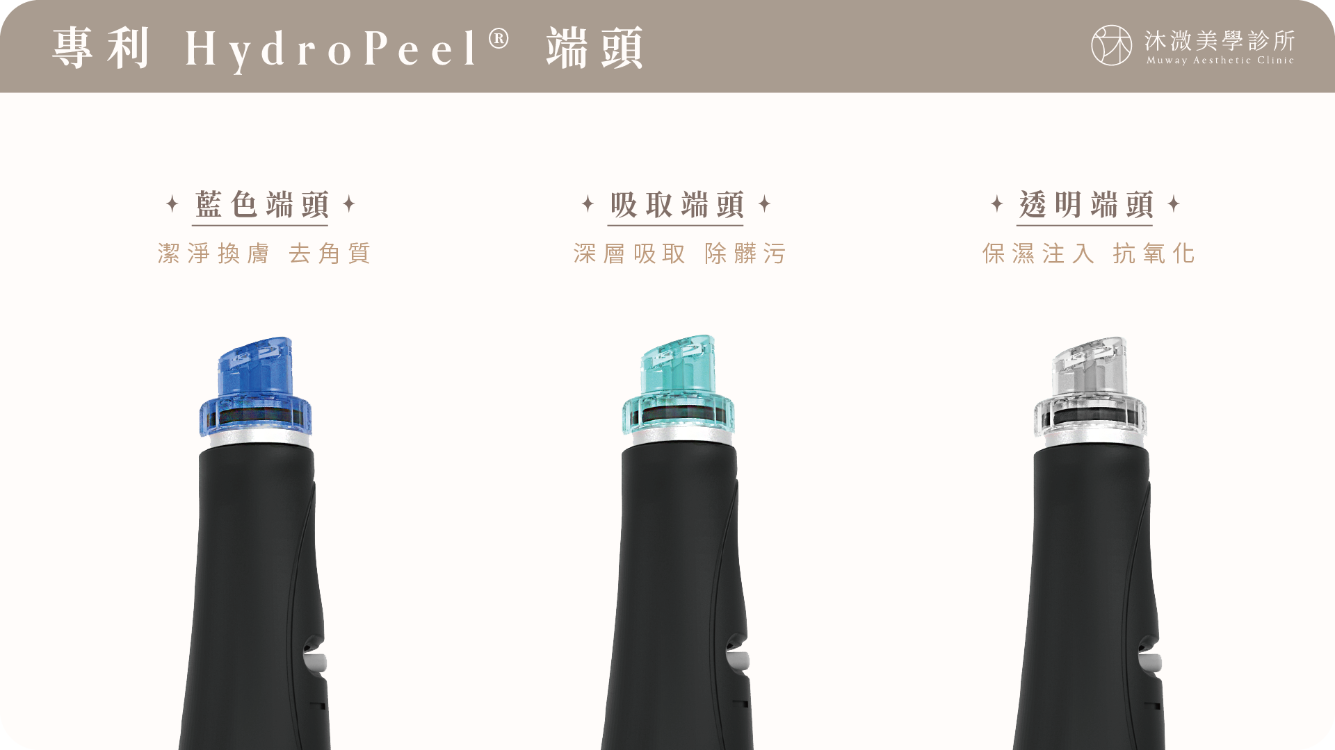 1.藍色端頭:溫和去角質、清潔肌膚。
