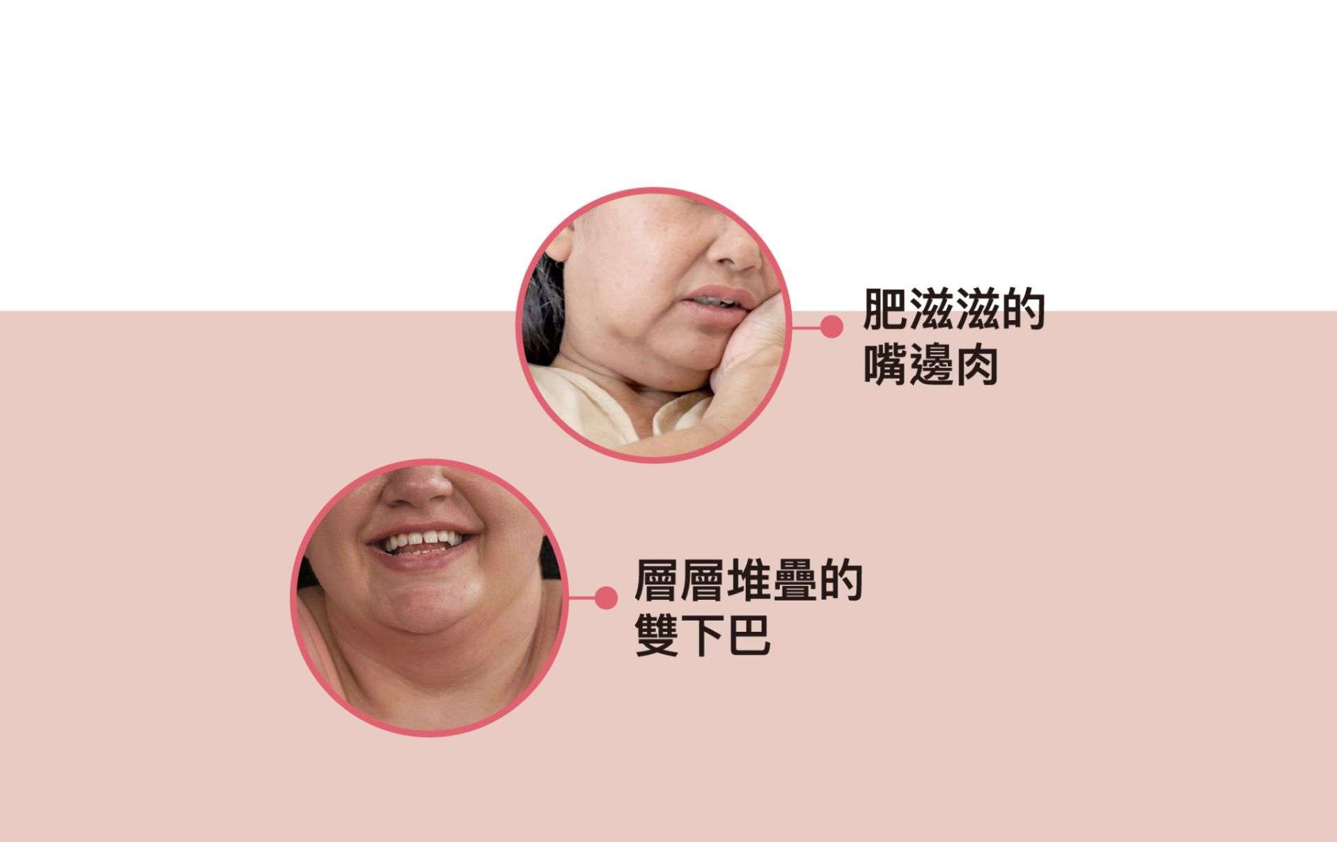 或下顎骨較小 / 後縮,下巴線條不夠突出,使下巴與頸部的界線模糊,看起來像雙下巴。