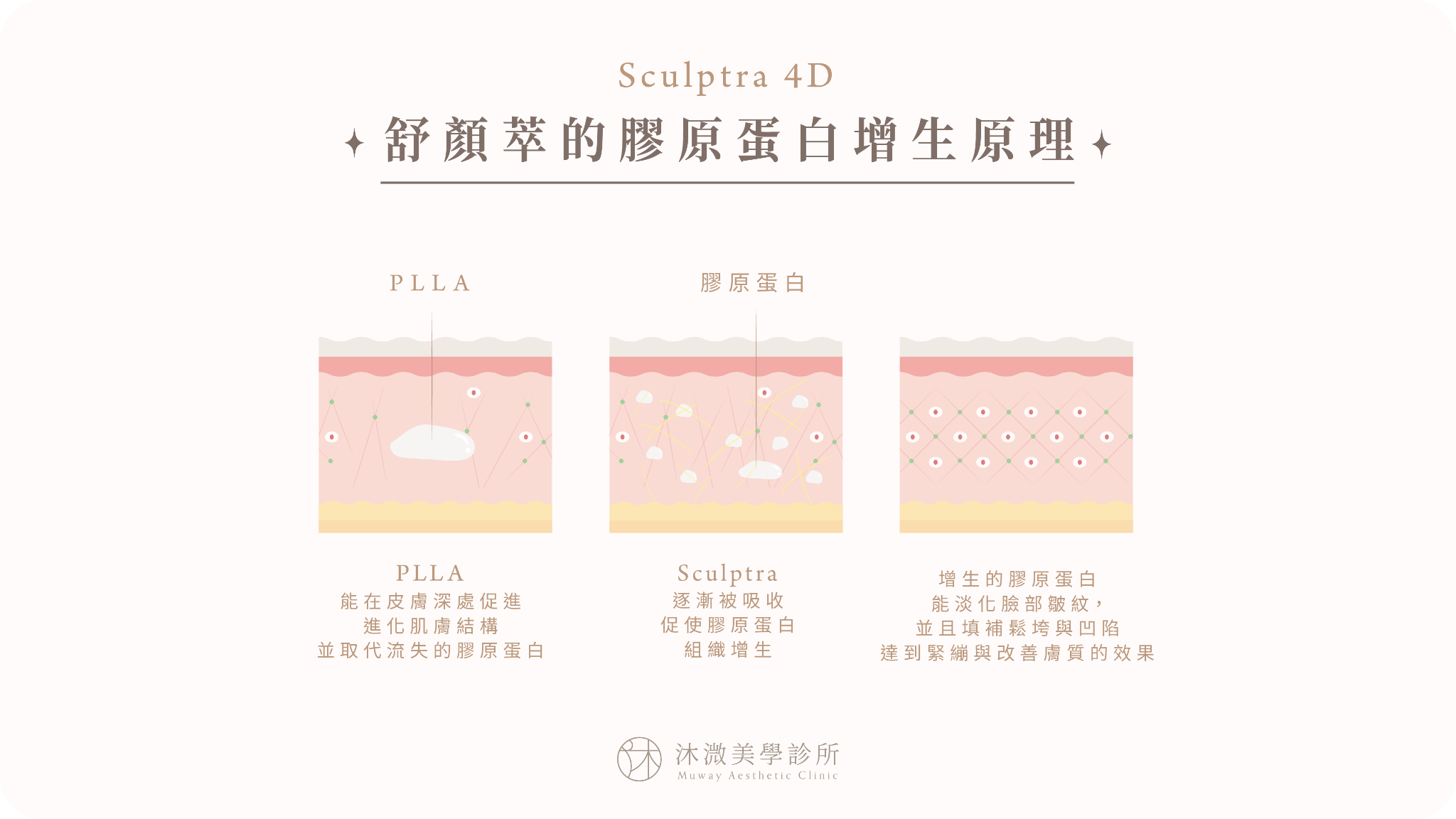 隨著年齡增長,膠原蛋白的流失會讓臉部逐漸失去年輕時的豐潤和緊實感。 SCULPTRA 4D舒顏萃通過注入「聚左旋乳酸」刺激自體膠原蛋白的增生,補充流失的膠原蛋白,幫助維持肌膚的豐潤感。