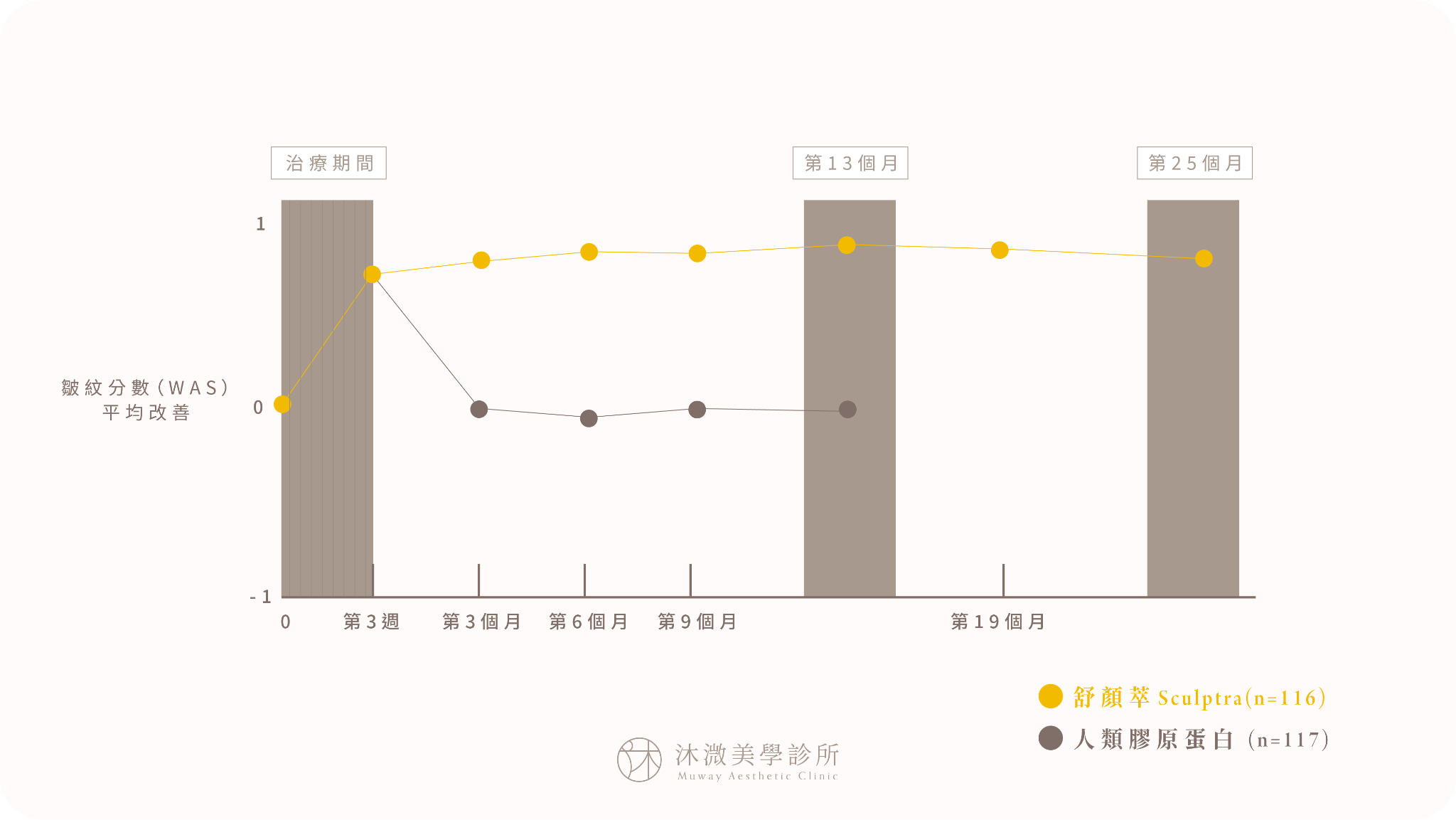 7.術後的肌膚需要一段時間慢慢增生膠原蛋白,因此聚左旋乳酸效果會在1到3個月內逐漸呈現,進而3到6個月以後達到最佳治療效果,療效最長可達兩年。